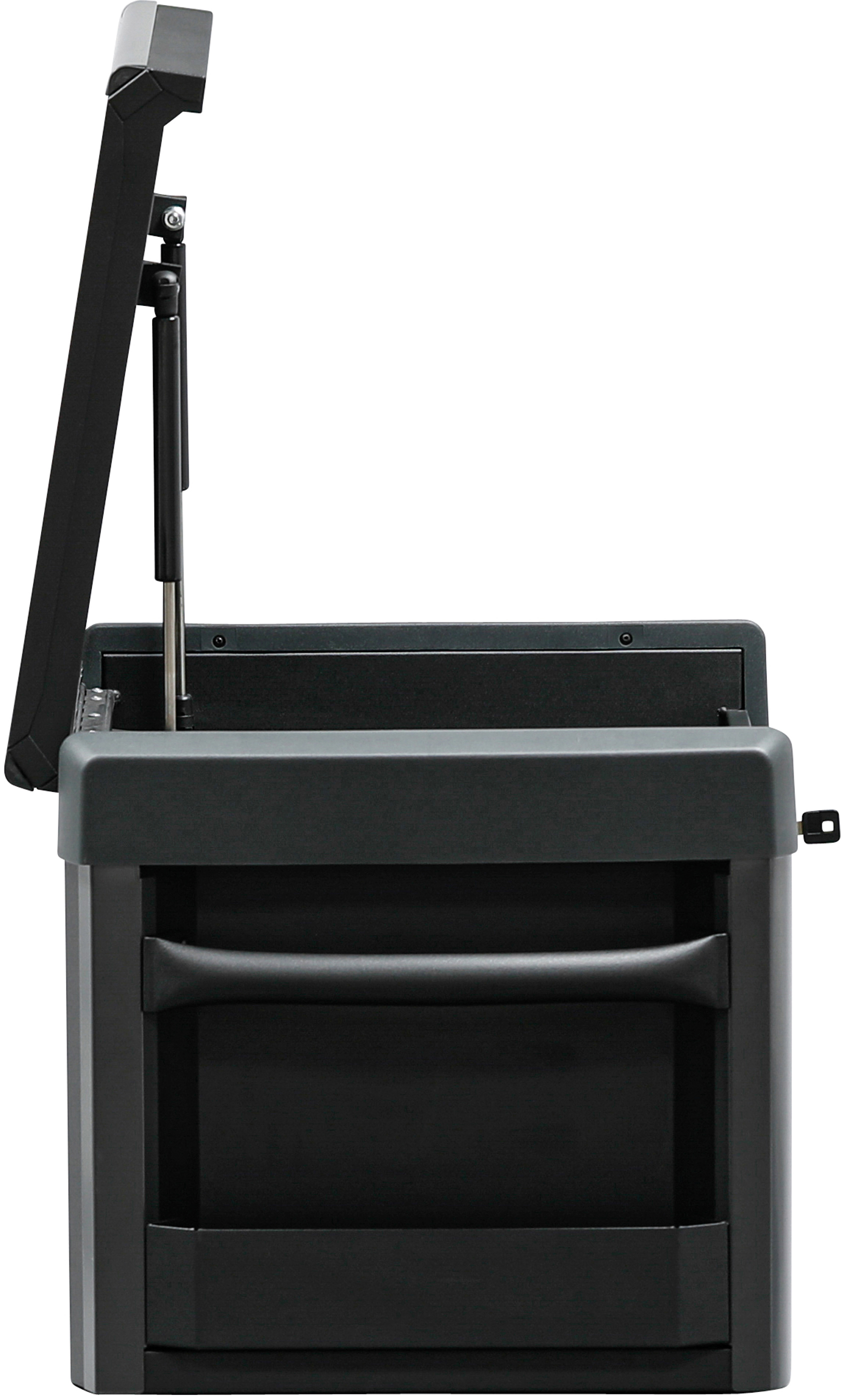 - 1 großes Ablagefach mit abschließbarem und hydraulisch öffnendem Deckel, Innenmaß (B x T x H) 610 x 420 x 75 mm